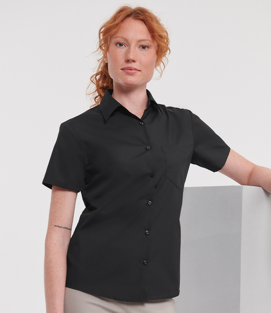Russell Collection Ladies Short Sleeve Easy Care Poplin Shirt