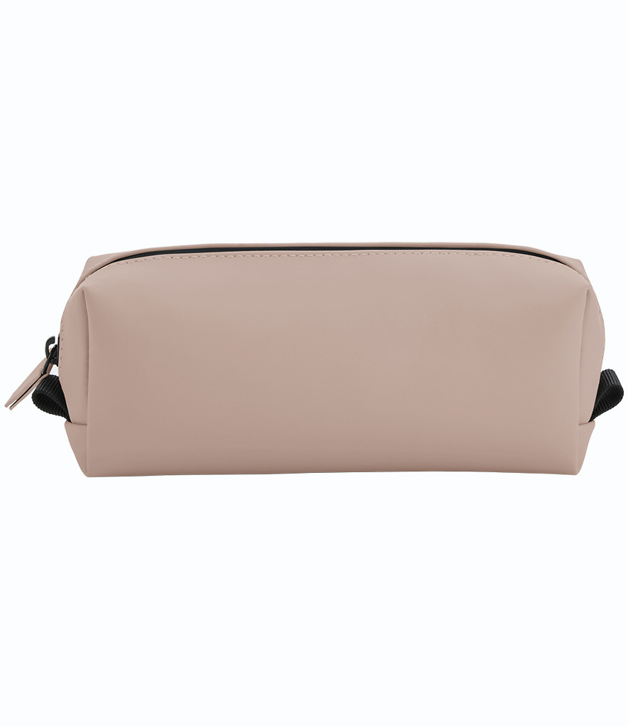 100% recycled polyester with matte-look PU coating. Minimalist styling. Main zip compartment. Rubberised zips. Multi-purpose use. Tear out label. Capacity 1 litre.