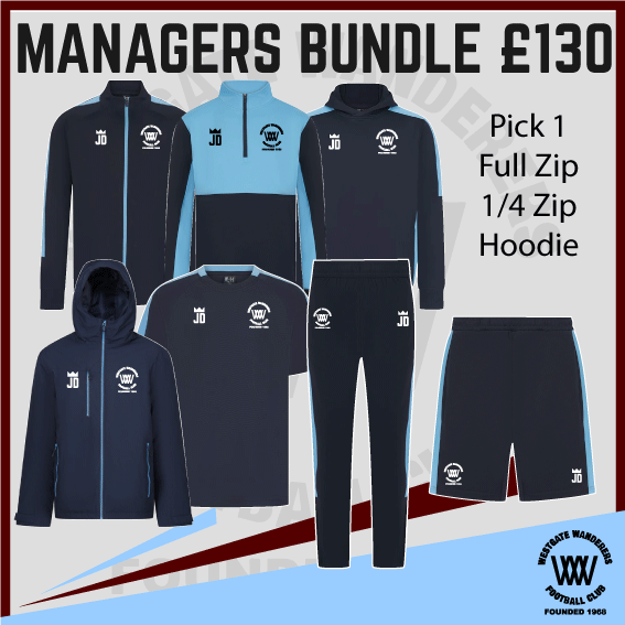 Our managers bundle come with the following items and the price includes printed club badge and your initials. please leave your intials in the box provided also we recomend getting a size down is shorts from the pants size these seem to fit better. just order your normal size for clothing as these are true to size.