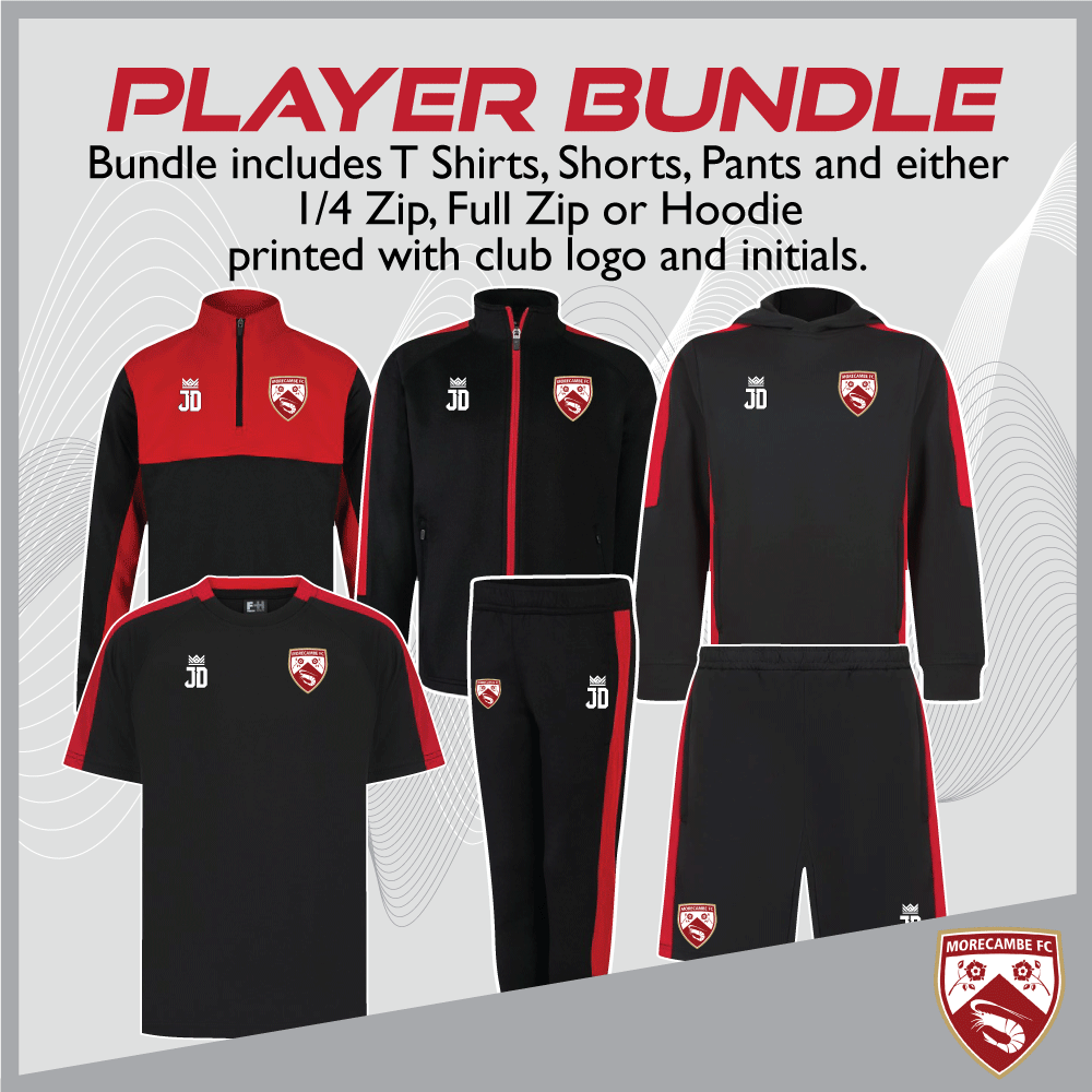 Our Players bundle come with the following items and the price includes printed club badge and your initials. please leave your intials in the box provided. just order your normal size for clothing as these are true to size. If you are unsure we have links below to the spec sheets that will give you all the details you need to know.